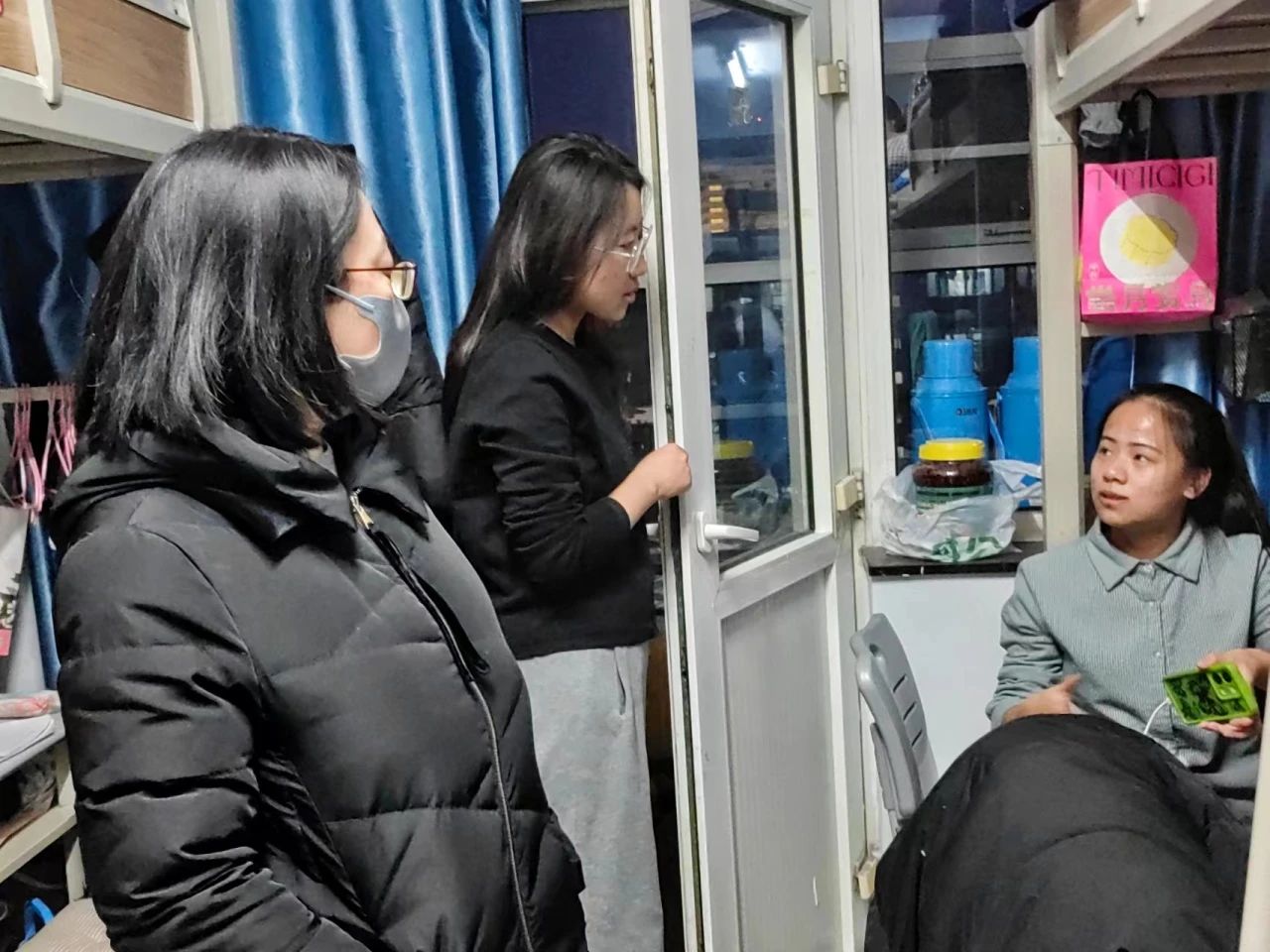 党委副书记副院长陆一琼、学生工作与就业办公室主任包双成及各班班主任于2023年12月15日走访学生寝室。