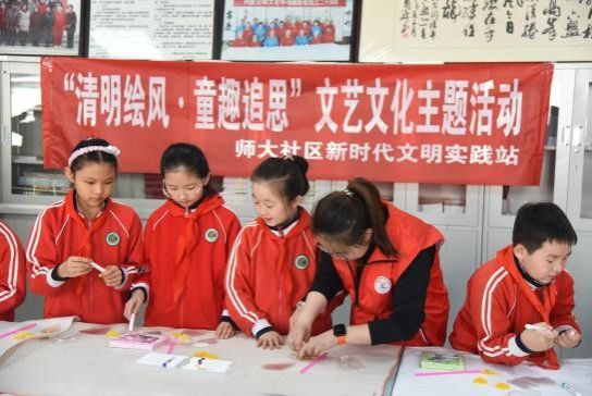 联合师大社区、师大关心下一代工作委员会及南门外小学,在师大家属区老干部活动中心举办“清明绘风·童趣追思”文艺文化主题活动。南门外小学约30名学生与学院志愿者互动,气氛温馨。