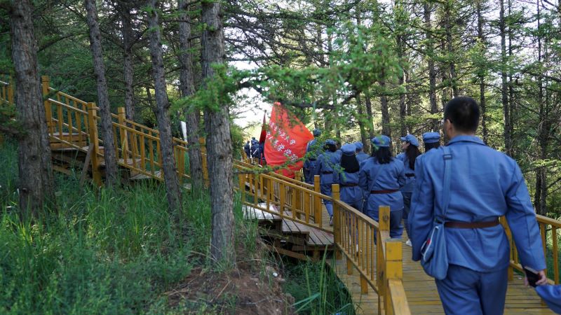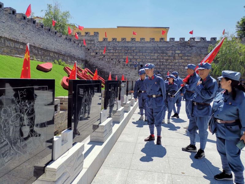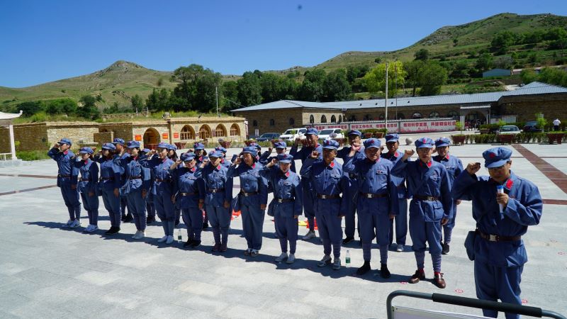 老牛坡村党支部位于清水河、偏关、平鲁两省三县的交汇处,是革命圣地延安通往大青山抗日游击根据地和共产国际的重要通道,是晋西北抗日斗争的前沿阵地。老牛坡党支部是抗战时期内蒙古、山西两地交界地区成立最早的农村党支部,是晋绥边区红色政权的重要组成部分,是引领革命斗争发展的一面旗帜。此次学习活动共5个部分,分别去到青龙洞生态文明教学点、明长城遗址、北堡村抗战遗址、北堡革命烈士纪念碑和老牛坡党支部旧址。每一个教学点都有一段刻骨铭心的历史,让我们真正体会到了“青山垂首怀烈士,绿水低回吊忠魂”的心境。
