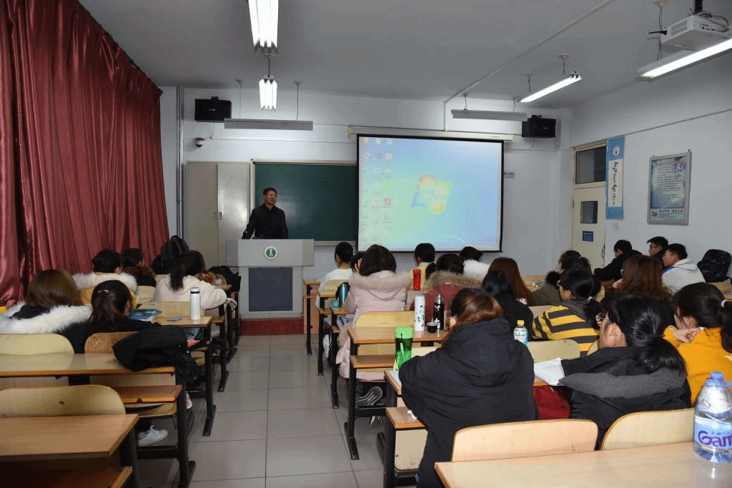 院长乌日陶克套胡老师、教学秘书范尊老师、学工办主任包双成老师、副教授张昆老师以及2019级全体本科生。