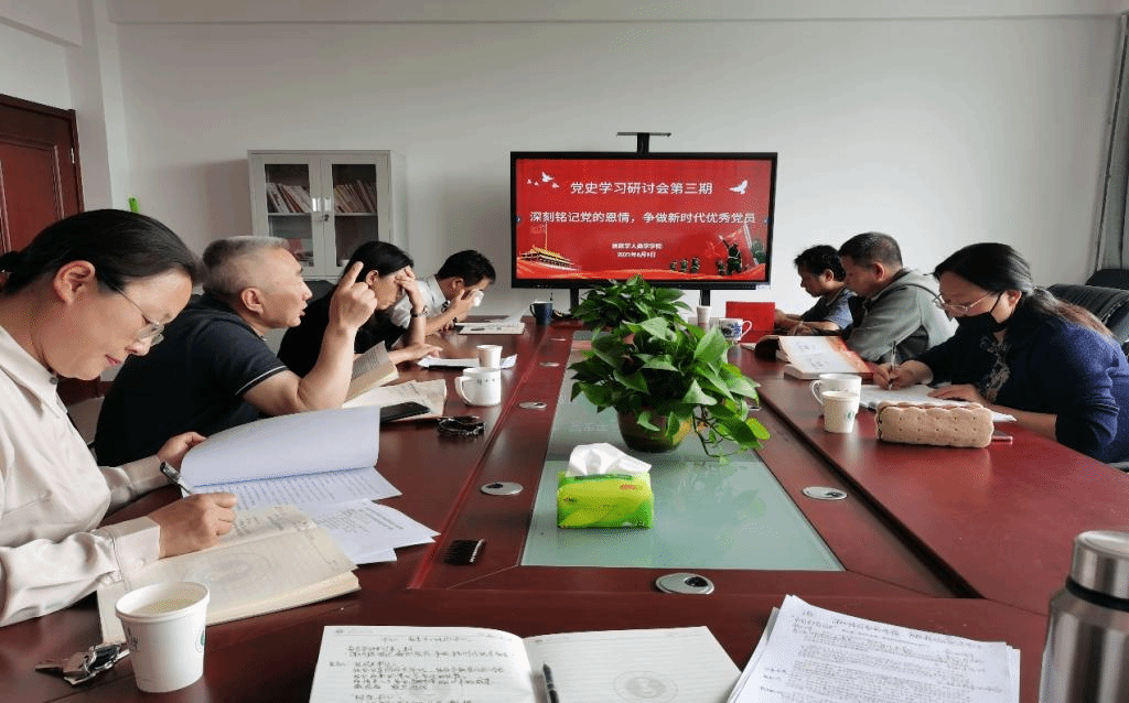 党史学习教育指导组王雪莹、包铁龙两位同志出席,学院党总支书记包凤兰、院长乌日陶克套胡、副书记兼副院长阿荣、副院长满达参加,双金、王瑞军两位总支委员参加了本次研讨会。