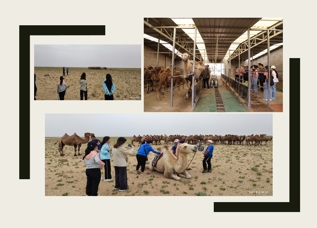 前往巴彦淖尔市乌拉特后旗的小组,田野点位于内蒙古西北边境,北部与蒙古国接壤,独特的戈壁草原景观。同学们深入到红驼养殖基地和养驼牧民家里,和养驼人们一同劳动,放牧骆驼,了解独特的红驼文化。