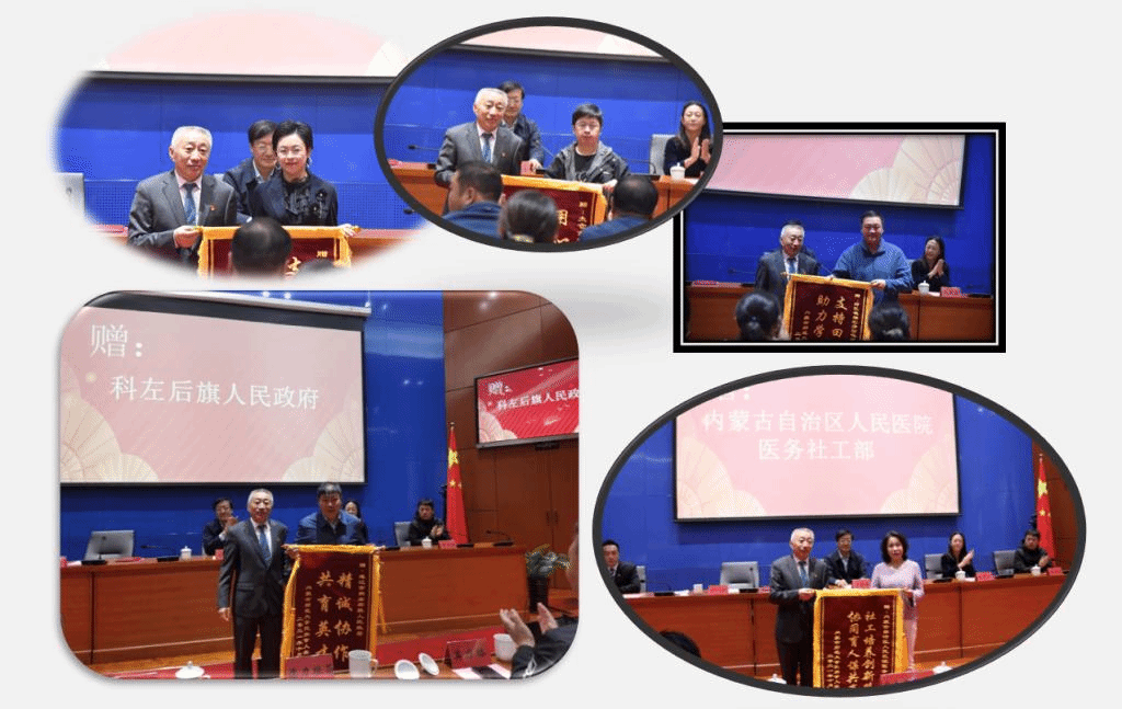 会议还对此次活动中表现突出的指导老师、优秀田野调查报告及优秀研究生志愿者进行了表彰。乌日院长代表学院对通辽市科左后旗人民政府、阿巴嘎旗巴彦图嘎苏木党委政府、内蒙古自治区人民医院医务社工部、和浩特市老年公寓管理处以及太仓市益善社工服务研究中心等五个基地赠送了锦旗。
