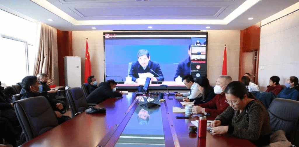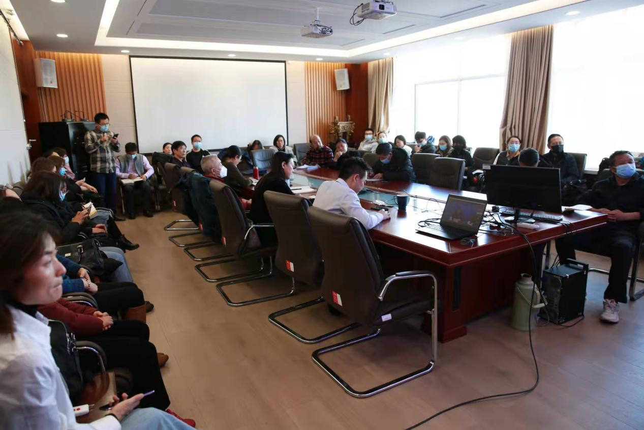 党委组织全院教工在田楼607会议室收听学习党的十九届六中全会精神理论研讨会。