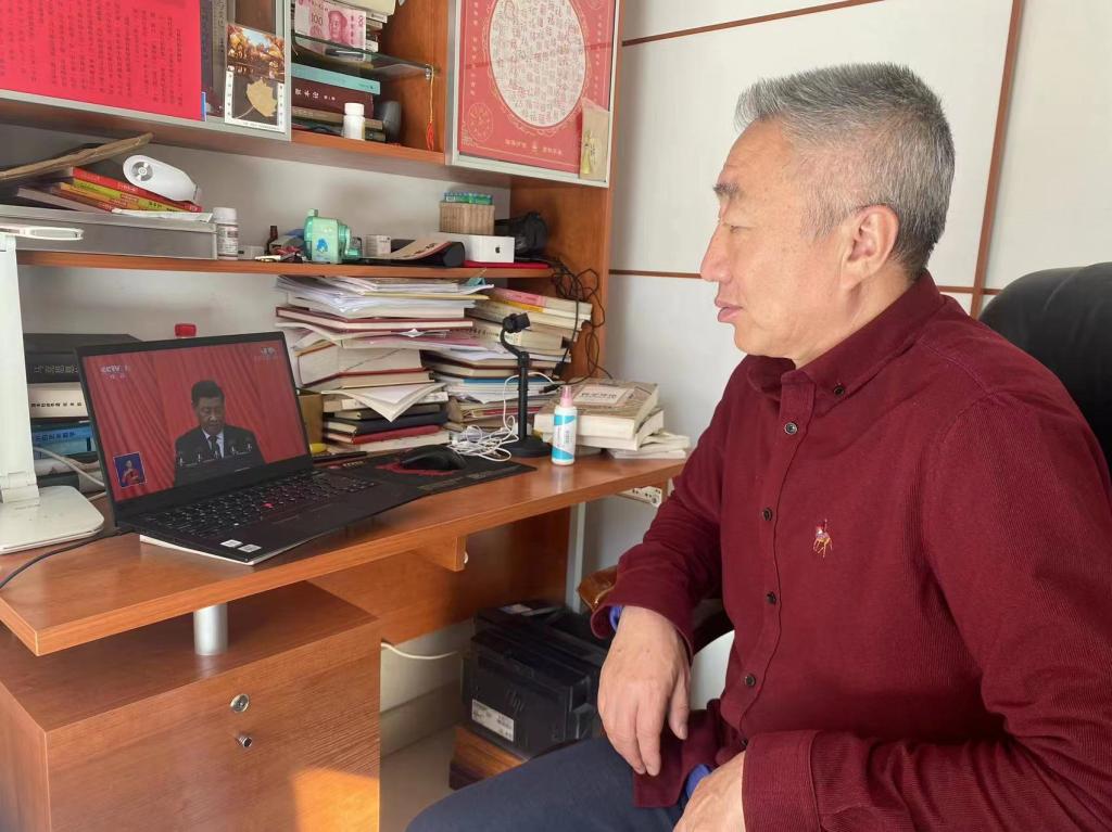 由于疫情影响,广大教工和师生都在家里、学校封控管理。虽然无法集体收看,但大家依旧通过电脑、手机、电视等方式收看直播,为“二十大”顺利召开而自豪。
