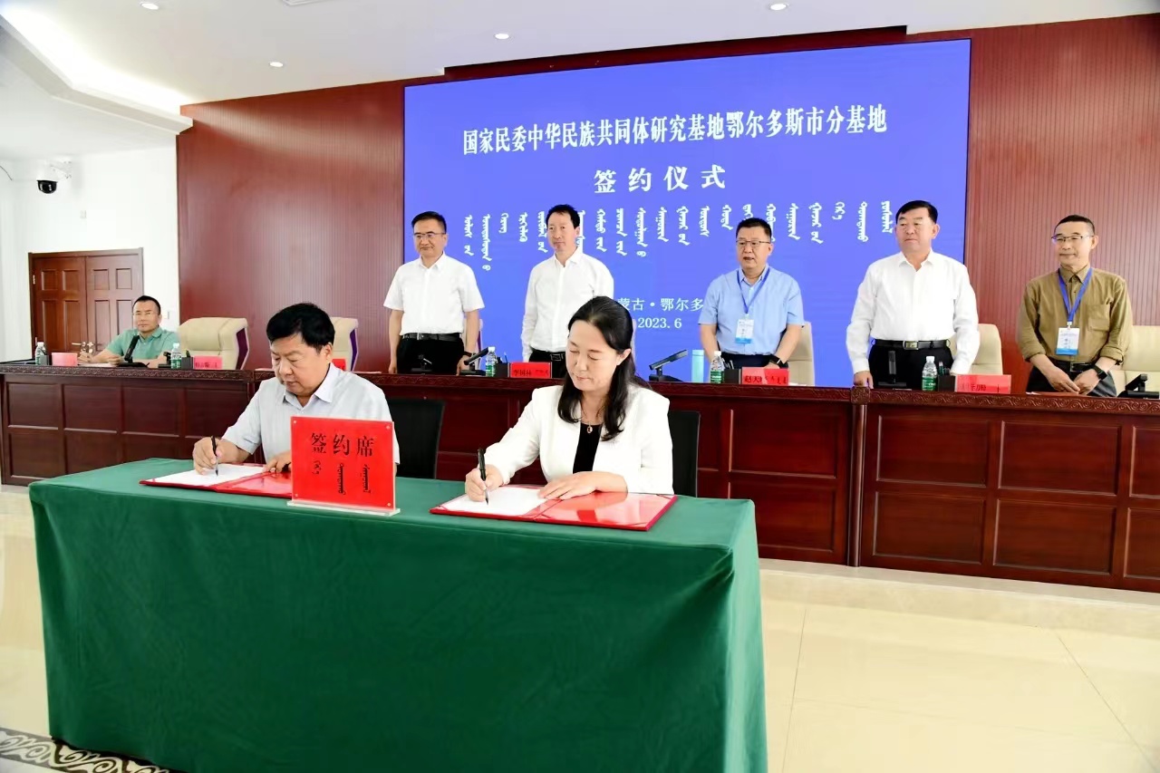 与鄂尔多斯市民委共建“铸牢中华民族共同体意识教育实践基地”合作协议》。