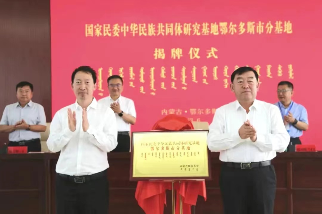 铸牢中华民族共同体意识教育实践基地揭牌仪式。额登毕力格与李树林共同为国家民委中华民族共同体研究基地鄂尔多斯市分基地、色色漫画