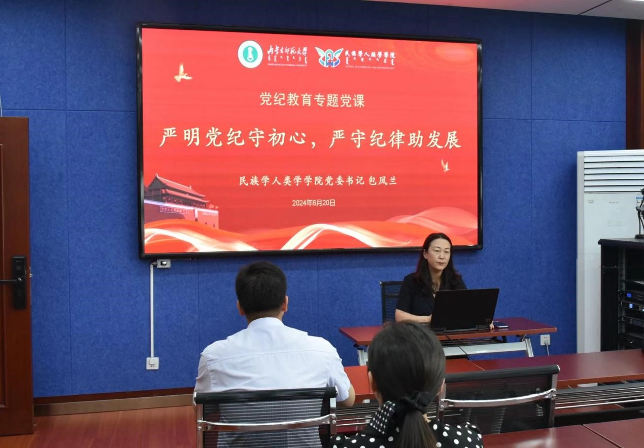 党委书记包凤兰在赛罕区田家炳楼615会议室为学院全体教工党员讲授了题为“严明党纪守初心,严守纪律助发展”的党课。