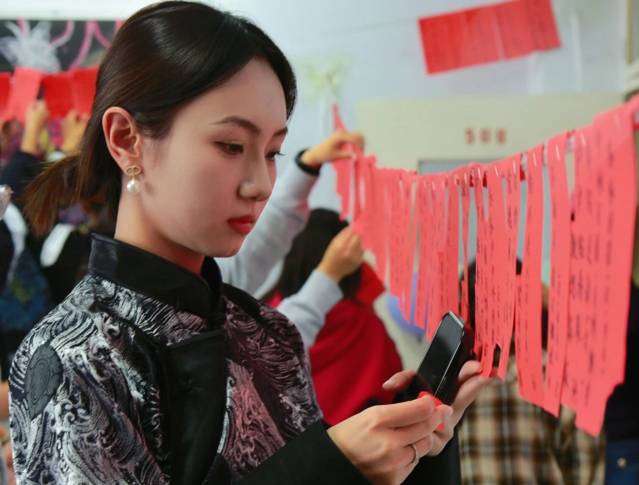 茶话会上,学院精心策划了“民族团结知识”猜谜游戏,百余副字谜题目涵盖了党史国史、各民族知识、传统文化等多个领域,既考验了同学们的智慧,又增强了大家对中华民族多元一体的认同感。老师和同学们争相竞猜,活动现场充满了欢声笑语。学院为猜中谜底的同学们准备了精心挑选的小礼物,每一份礼物都承载着对同学们的鼓励和对学院各民族同学互亲互爱共同进步的期许。