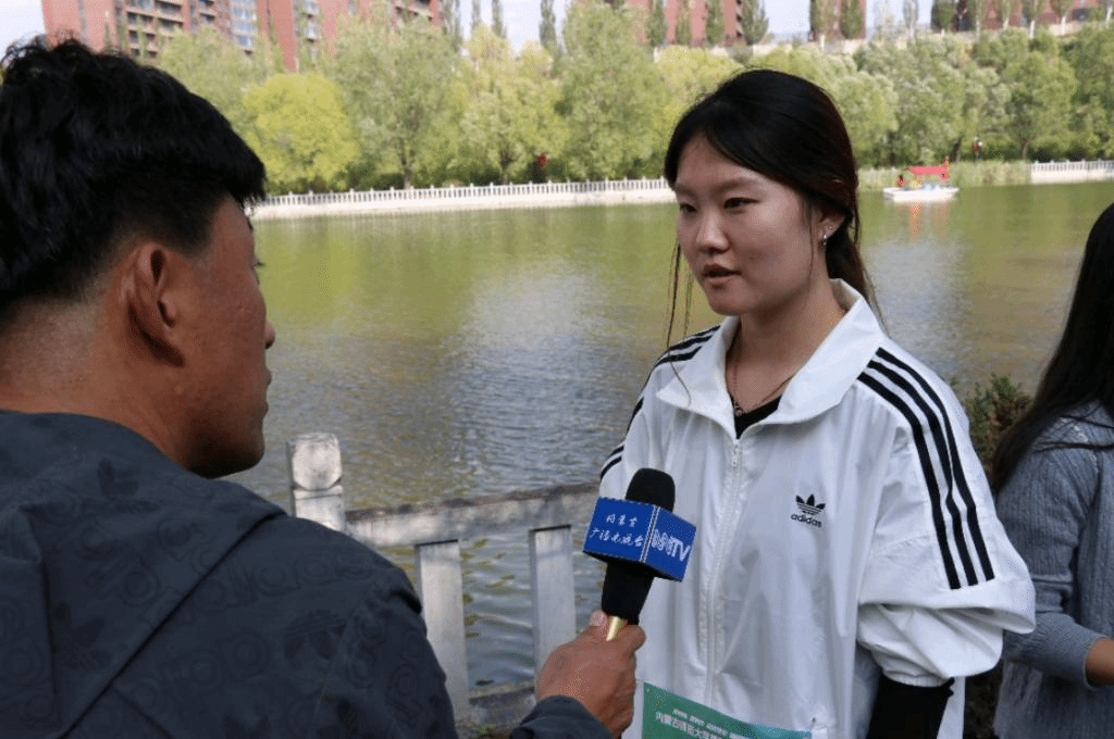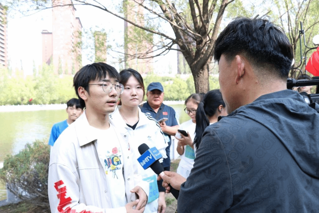 学生进行采访。参赛选手王周璇和学生干部黄长江在接受内蒙古日报采访时,脸上洋溢着自信与喜悦。