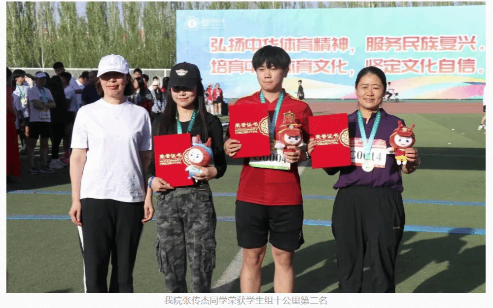学生张传杰获得了全校第二名的好成绩,用实际行动诠释了“永不言弃、勇攀高峰”的体育精神。