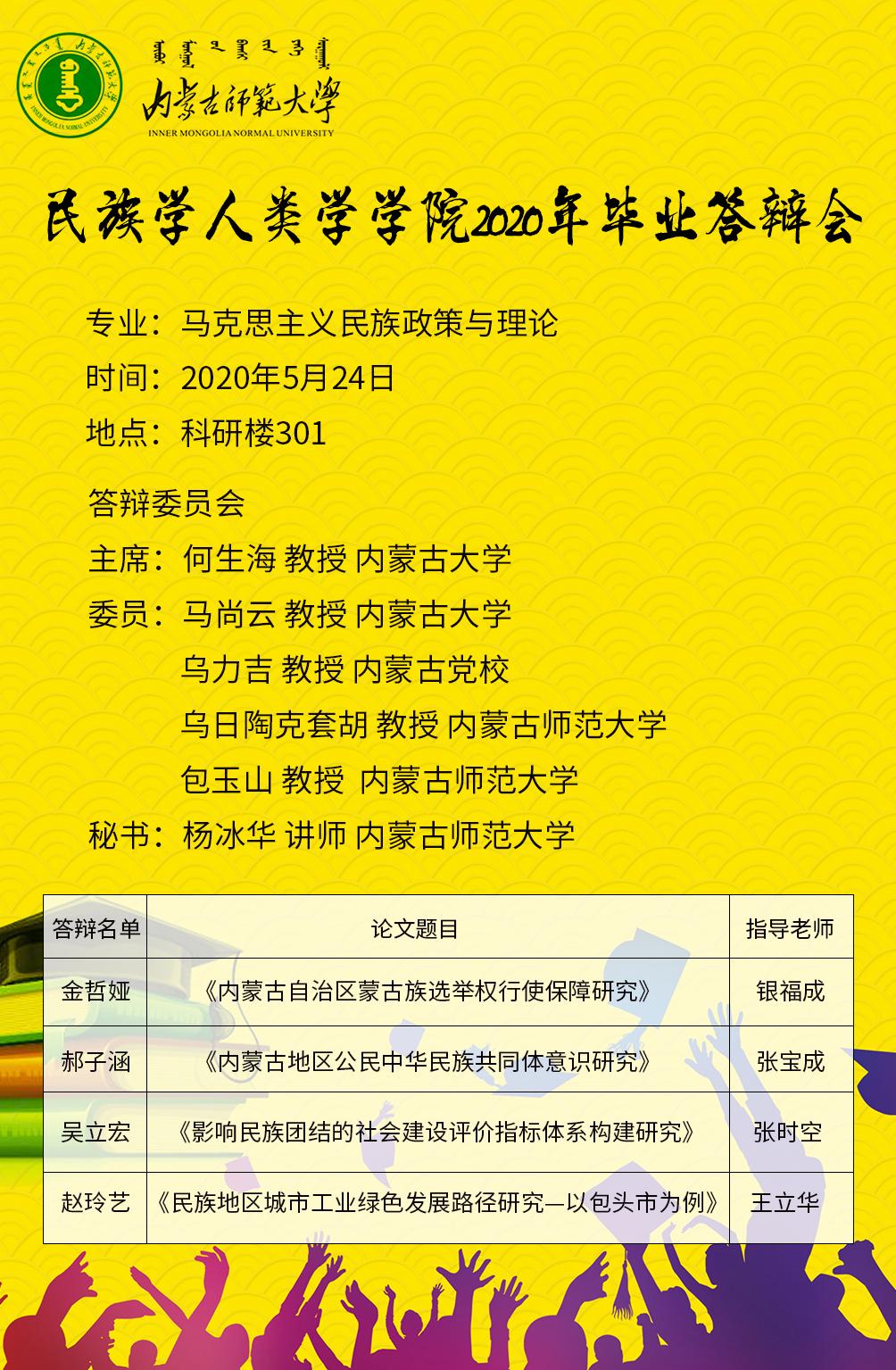 关于2020届马克思主义民族理论与政策专业硕士研究生毕业论文答辩的通知