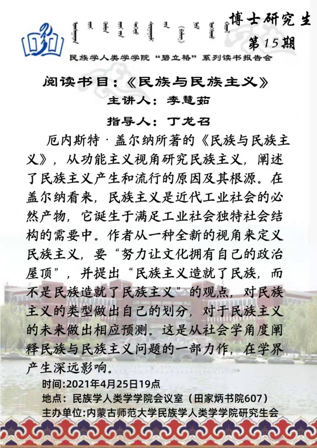 “碧立格”系列读书会中国少数民族史第2期预告