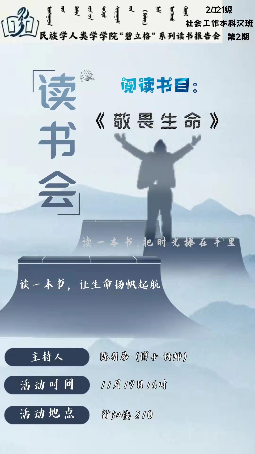 “碧立格”系列读书会2021级社会工作本科汉班第2期预告