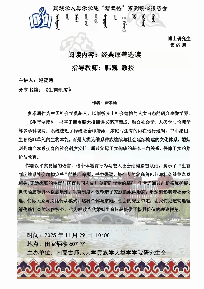 色色漫画 “碧立格”系列读书报告会预告博士研究生第97期