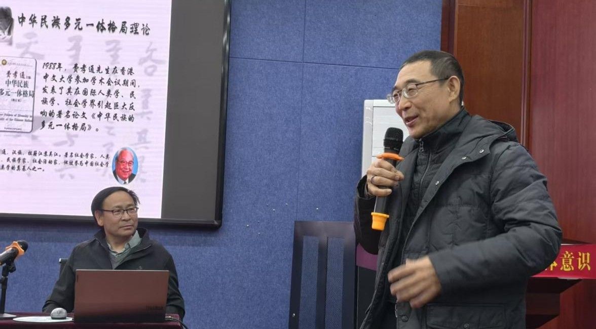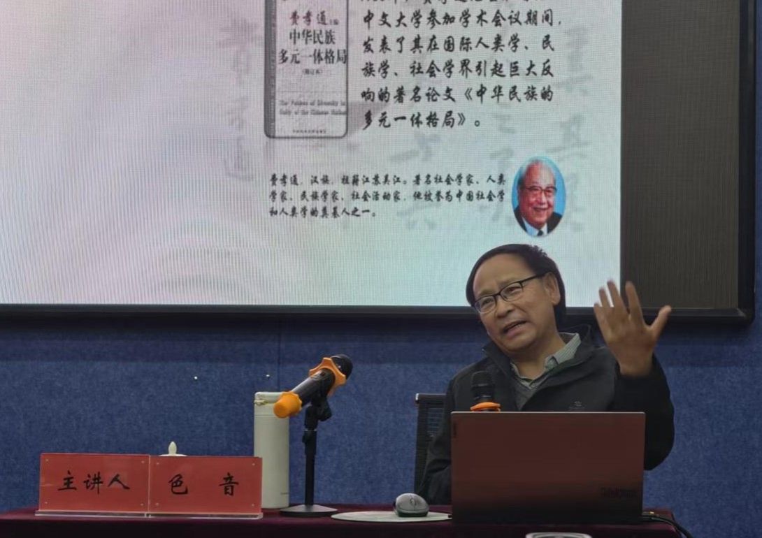 邀请北京师范大学社会学院色音教授作了题为“费孝通中华民族观及其当下意义”的学术讲座。学院党委书记包凤兰教授、纳日碧力戈教授、部分青年教师及相关专业硕博士生参加讲座。讲座由副院长满达教授主持,常宝教授担任与谈人。
