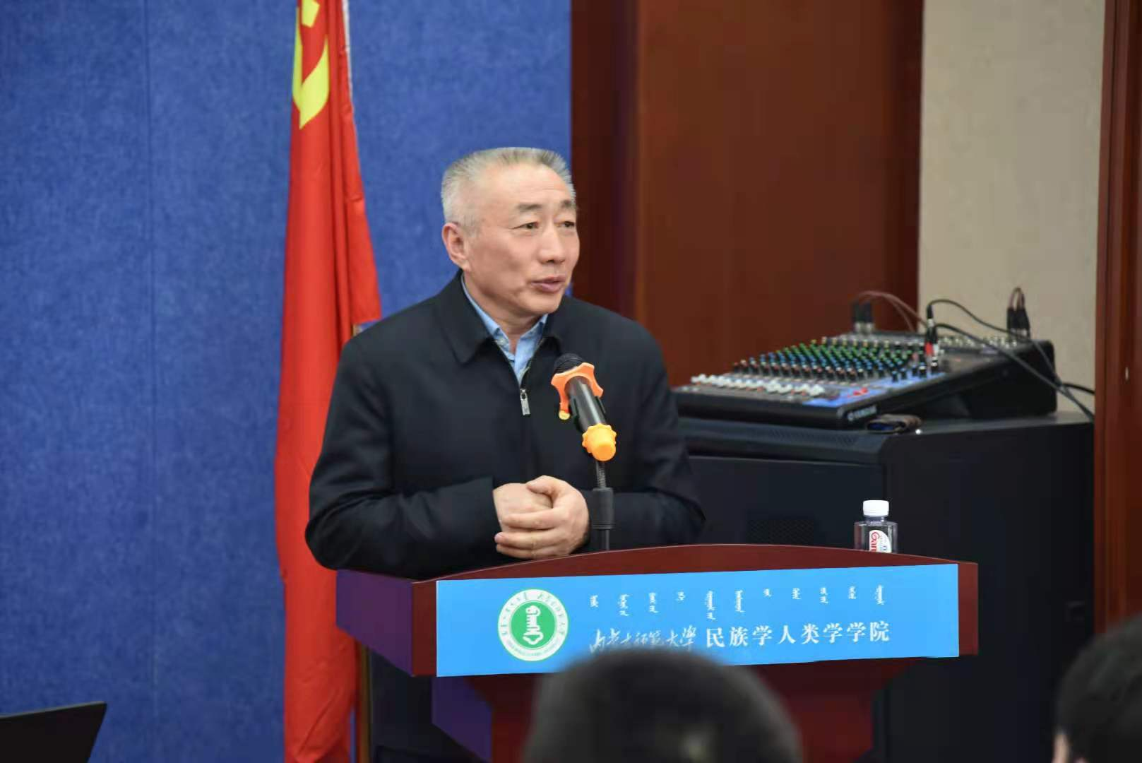 学生讲解了人类学的意义。参与本次讲座的有乌日陶克套胡院长、满达副院长、学院其他老师、博士、硕士研究生和本科生共90余人。