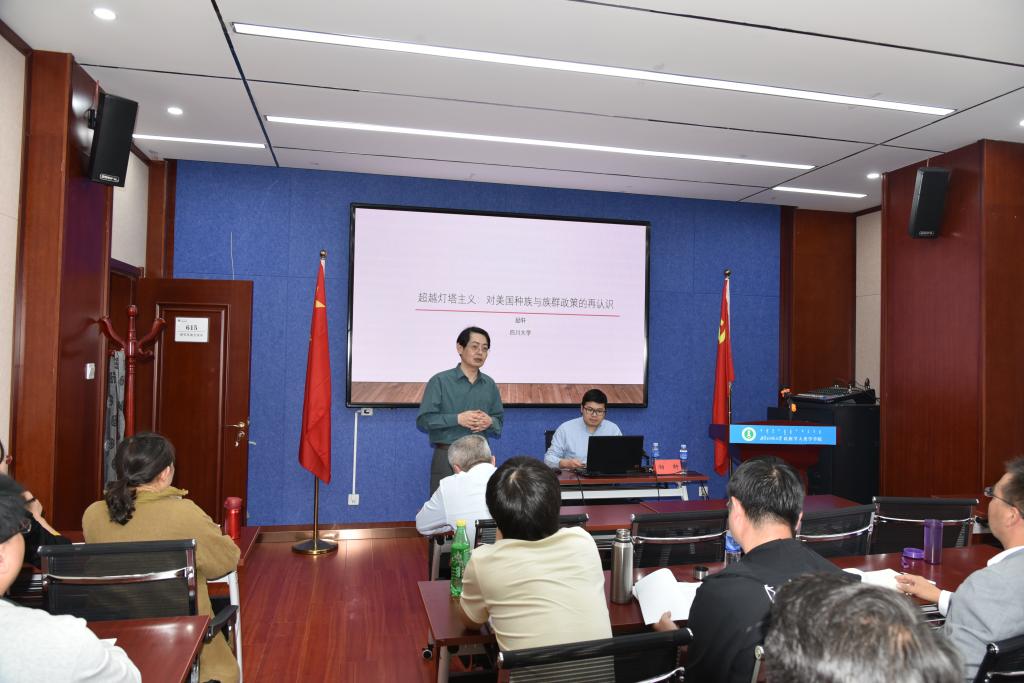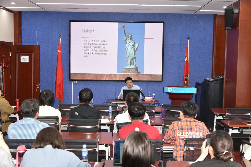 讲座伊始,励教授提到过去一百年中国社会精英将美国视为灯塔,提出中国应以美为师,用美国经验来解决中国自己的民族问题的现象,进而提出“灯塔主义”这一概念,并提出了在中国正迎来百年未有之大变局的今天,中国是否有必要再去实践百年前一些中国精英在倡导又没有完成的美国模式这一问题。接下来,励教授分别从“熔炉与灯塔主义”、“超越灯塔主义”、“美国种族与族群政策的社会主义化”等三个方面展开分析与讨论。最终得出结论:在民族政策方面,中国没有必要去实践百年前一些中国社会精英倡导的所谓美国模式。在分享结束之后,励教授与现场的师生通过问答的方式展开激烈的互动。