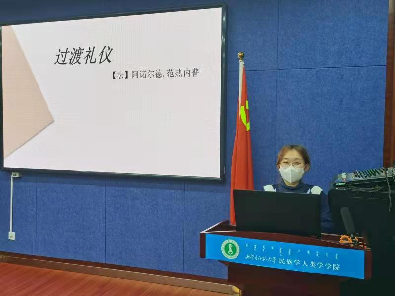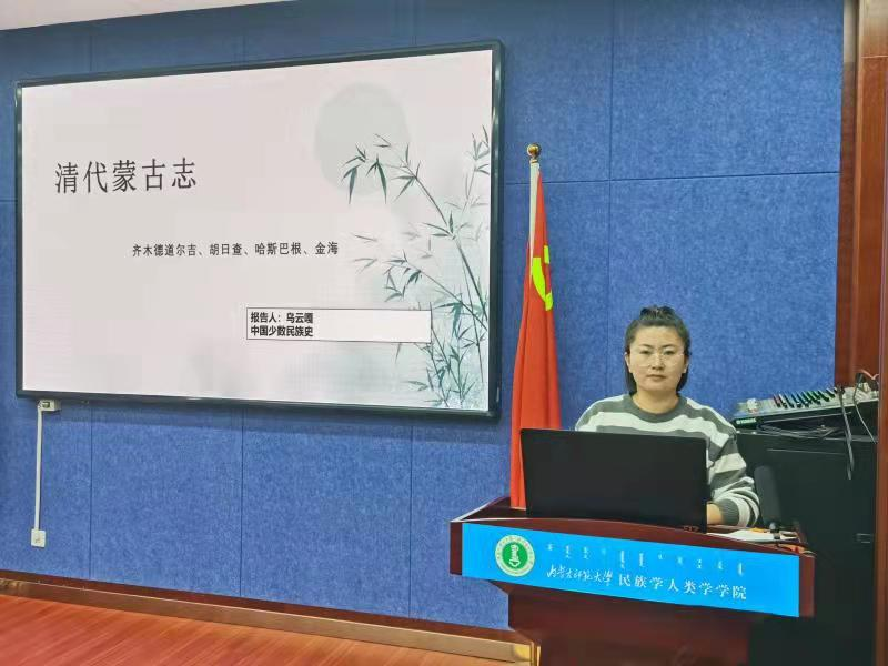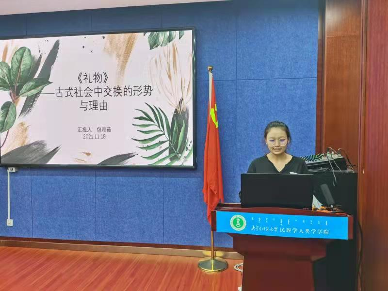 20级民族学1班全体同学开展读书报告会。主讲内容是,包雅茹分享莫斯的《礼物》、苏日格格分享范热内普《过渡礼仪》、乌云嘎分享齐木德道尔吉等的《清代蒙古志》,由云中老师和萨出日拉图老师参与并指导。