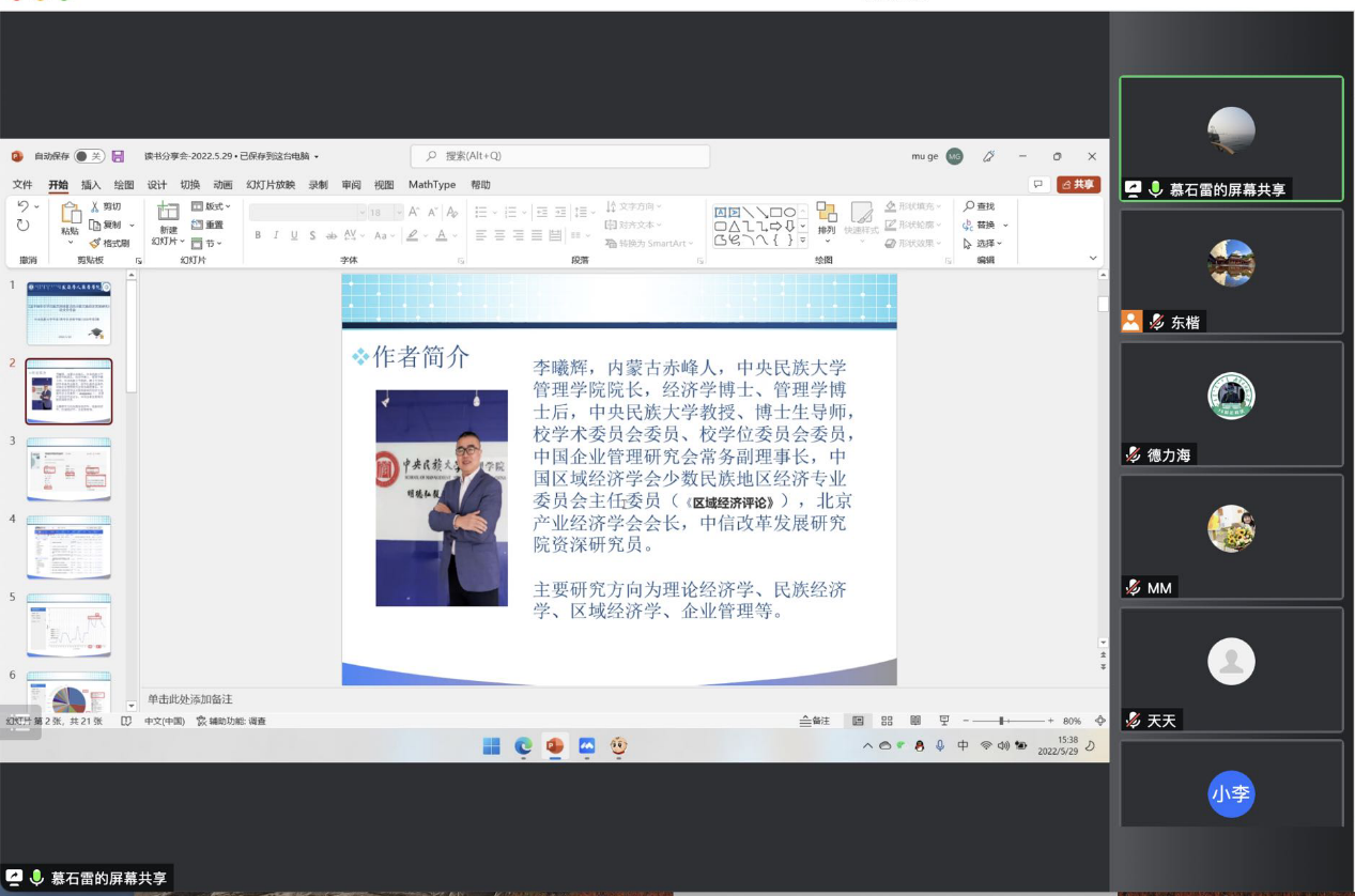 2021级、2020级博士研究生通过“腾讯会议”举行了第40期读书报告会。本次读书报告会的汇报者是来自2021级中国少数民族经济专业的索东楷、慕石雷两位博士生,2021级博士生德力海主持本次读书报告会。