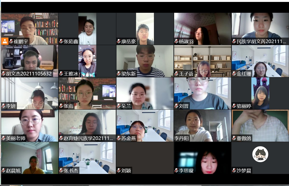 2021级民族学本科班以线上的形式开展了第八期“碧立格”系列读书报告会。指导老师——包美丽老师线上同步进行指导,2020级袁金浩学长也受邀参加此次读书报告会,张茹鑫同学进行线上主持,董傲鸽、杨舒羽两位同学进行书籍《看见》的分享。