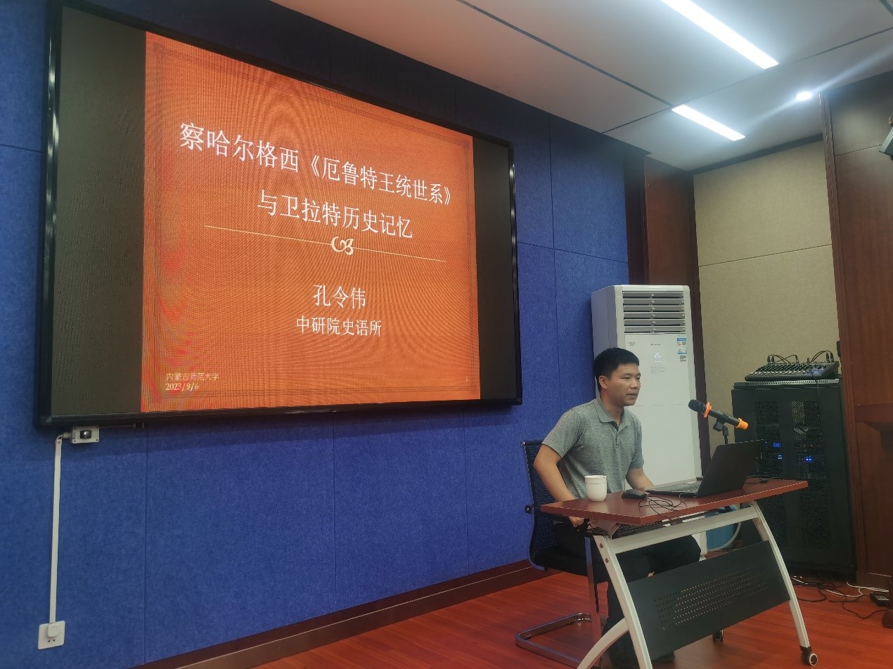 孔令伟研究员从有关厄鲁特和卫拉特的不同解释开始,分析了厄鲁特和卫拉特之间的关系;讲述了四卫拉特起源,僧格之死,噶尔丹掌握准噶尔汗权、土尔扈特东归等历史事件在《厄鲁特王统世系》中的记载情况;同时,结合《蒙古秘史》、《白史》、《蒙古源流》等史料及档案史料,论述了十八世纪后期的著名蒙古学者察哈尔格西•洛桑楚臣以藏文撰写之《厄鲁特王统世系》在一定程度上体现了准噶尔覆亡后,当时的蒙古知识人对卫拉特历史的认知,这体现了十八世纪下半叶以后的蒙古学者对卫拉特历史的认知建构。