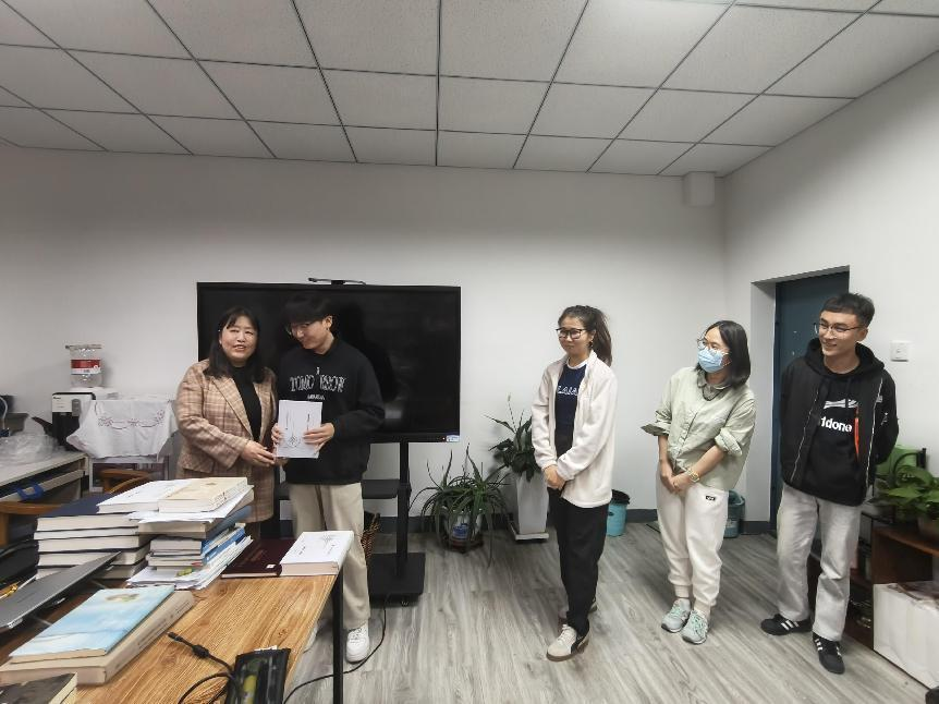 阅读分享后,开展了赠书活动,谢咏梅教授为此前在碧立格系列读书会中做过报告的学生赠送书籍,以此激励同学们爱读书、读好书、善读书。