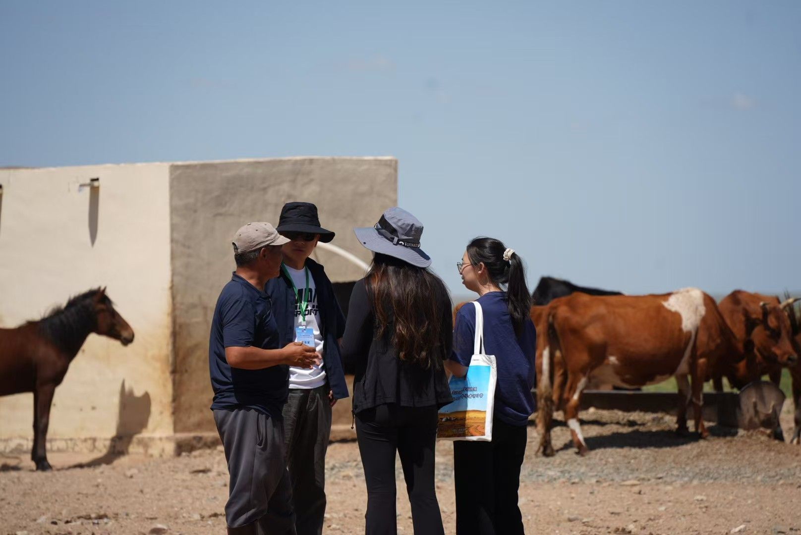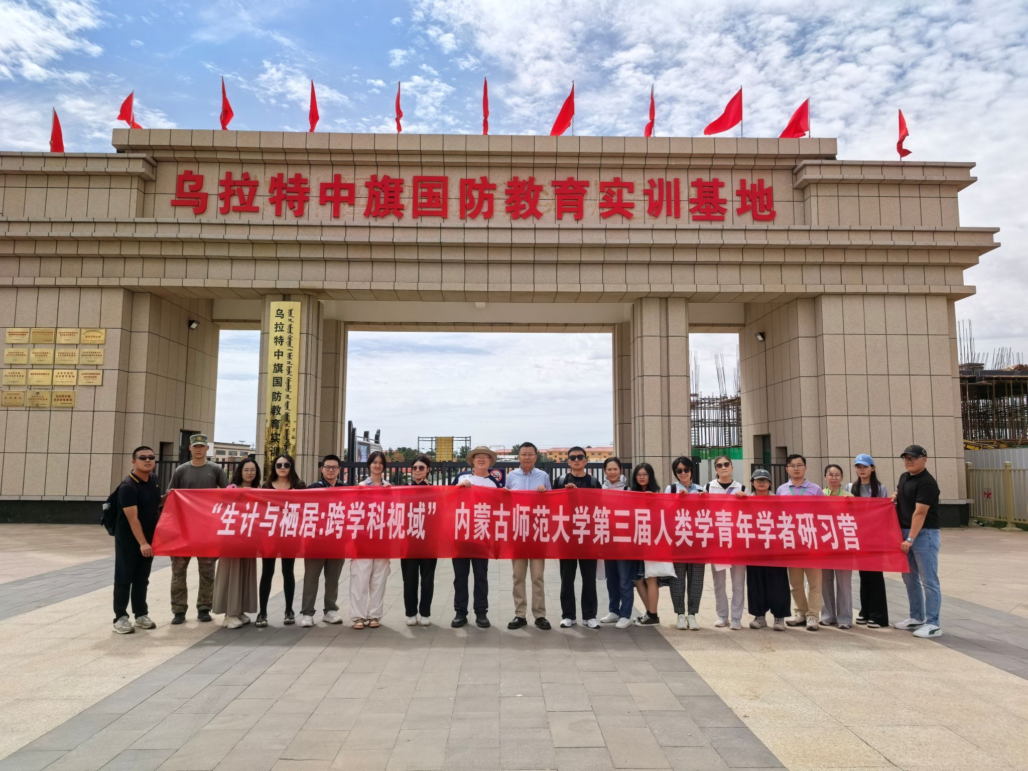 实践基地联盟单位——乌拉特中旗委旗政府的大力支持下,由乌日格木乐、额尔德木图、武宁三位教师带领16位营员,深入甘其毛都口岸、巴音乌兰苏木及下辖嘎查,聚焦边境旗县地区的畜牧业经济发展、农牧合作社模式、建筑空间与文化遗产保护等议题,进行了细致地调查研究,获取了宝贵的一手田野资料。